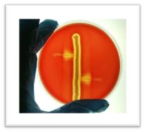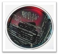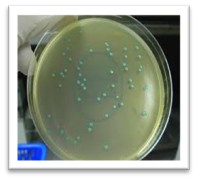 شکل1- کلنی سبز-آبی لیستریا مونوسایتوژنز در محیط ALOA